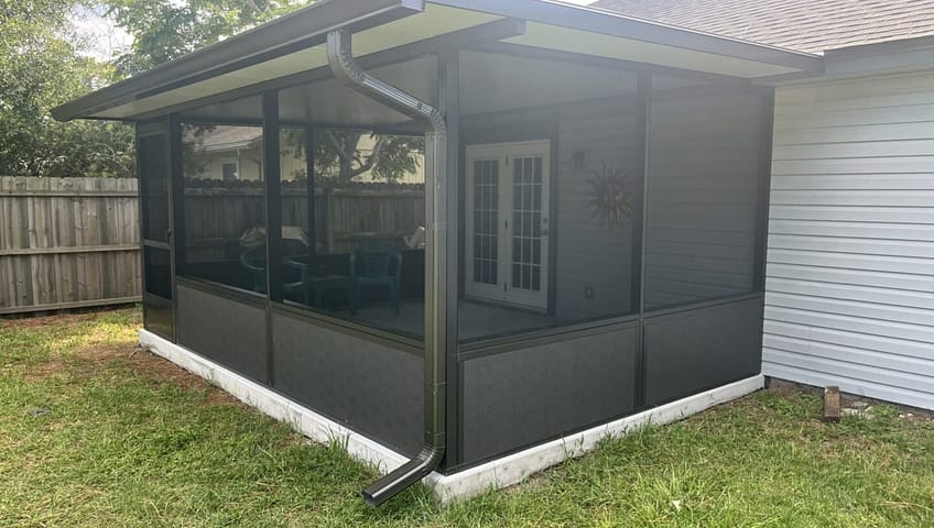Many homes are built with an existing patio and roof and converting to a Screen Room makes perfect sense. Enclosing an existing patio adds value and comfort to any home. If you have a wall system similar to this house, give us a call for a Free Quote. 904-435-5018. We hope to help you with your new Screen Room Addition!