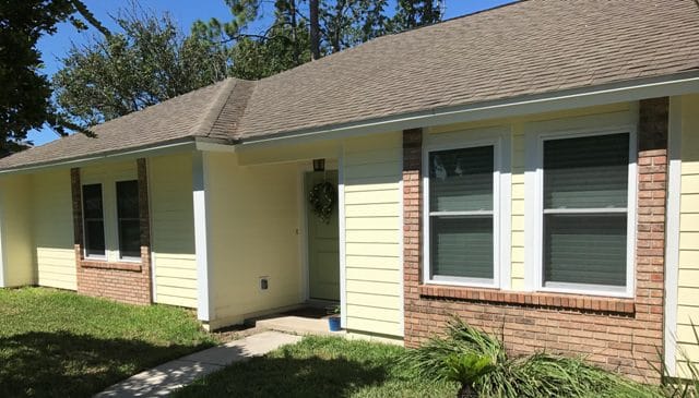 This home features James Hardie 7.25″ Lap Siding with a new Vinyl Soffit and Fascia System. The exterior is finish painted using Sherwin Williams 25 Year Super Paint. Before the remodel, this home had T-111 Siding and a wooden soffit. The front of the house was lap siding which was removed, sheeted with 7/16″ OSB then sided with the James Hardie Lap Siding. This remodel added tremendous value to the home and now will be enjoyed for years to come.