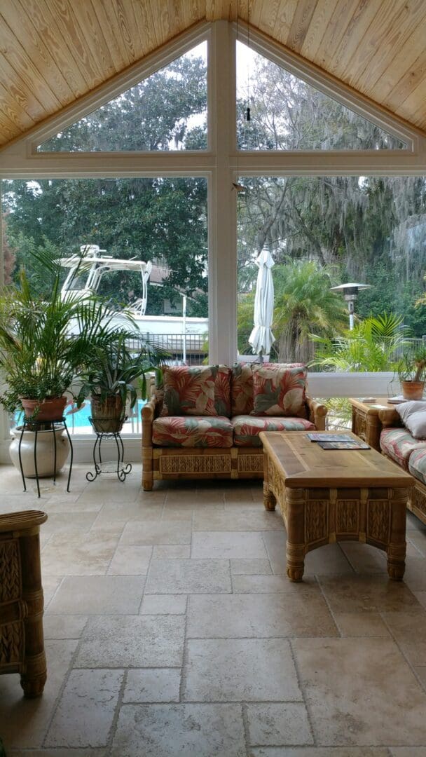 Custom Built Sunroom located in Neptune Beach Florida. This Room features Simonton Reflection Series Vinyl Windows, Custom Windows Full View French Door, Shingled Composite Gable Roof. A PTAC HVAC Unit was install through the side wall creating habitable space. Call Today For A FREE QUOTE!